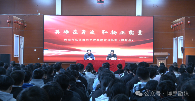 10月21日下午,保定市见义勇为先进事迹宣讲活动在我县青少年活动中心报告厅举行,集中展示了近年来我市涌现出的见义勇为英雄感人事迹。县委常委、政法委书记代朝辉,市弘正见义勇为基金会副理事长李栋梁,市委政法委一级主任科员、基金会监事于丽娜出席活动。各镇及各部门分管领导、企业代表、县职教中心师生代表共300余人参加了宣讲活动。