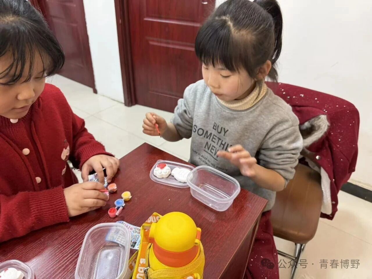 孩子们纷纷拿起画笔,精心调色、细心描绘,用五彩斑斓的色彩为石膏娃娃赋予生机与活力,在动手创作中发挥想象力、培养专注力,现场充满欢声笑语,氛围温馨又热闹。