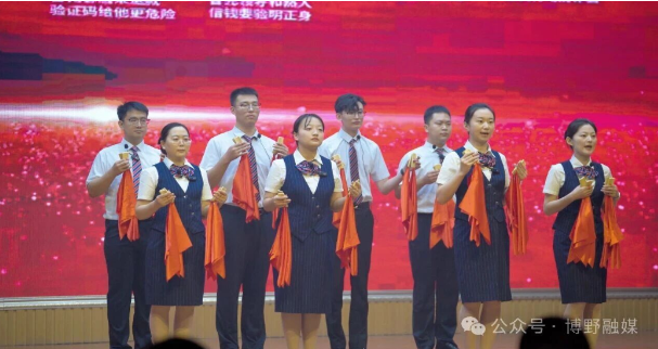 演出活动以纪念中国人民抗日战争胜利80周年为主题,通过红色经典歌曲、防非防诈三句半、现代京剧等群众喜闻乐见的文艺形式,回顾抗战峥嵘岁月,引导群众筑牢金融安全防线。 现场互动环节主持人将金融知识与防非防诈真实案例紧密结合,以案说险,广大群众踊跃参与,起到了良好效果。 室外展板将伟大抗战精神中“守护家园”与现实生活中“守护钱袋子”紧密联系,吸引群众驻足观看。活动现场群众近千人,散发宣传资料2000多份,多维度、立体营造“全民防非、主动打非”“明明白白消费,清清楚楚维权”的良好社会氛围,打造和谐健康的金融环境。 |