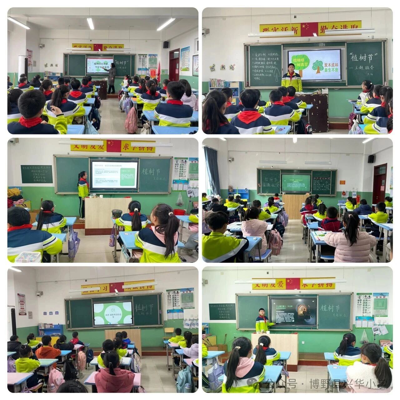 为培育青少年劳动意识与环保意识,引导青少年践行劳动精神、树立护绿理念,近日,团县委与兴华教育集团西校区联合开展了“劳育润心 绿护成长”系列主题实践活动,活动共设四个环节,层层递进,让青少年在实践中收获成长,在行动中传递责任。 春暖花开 种植绿色 1.护绿课堂 活动伊始,各班级召开植树节主题班会,普及护绿知识、明确劳动意义。知识问答环节,同学们积极抢答护绿知识,巩固环保理念。