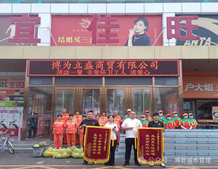 为切实维护广大环卫工人劳动者的劳动安全健康权益,把党和政府以及社会组织的关爱送到广大一线职工的心坎上。住建局联合博为立盛商贸有限公司为博野县城区一线环卫工人送来2024年“夏日清凉”,以实际行动让高温作业下的户外劳动者感受到丝丝清凉和浓浓爱心。