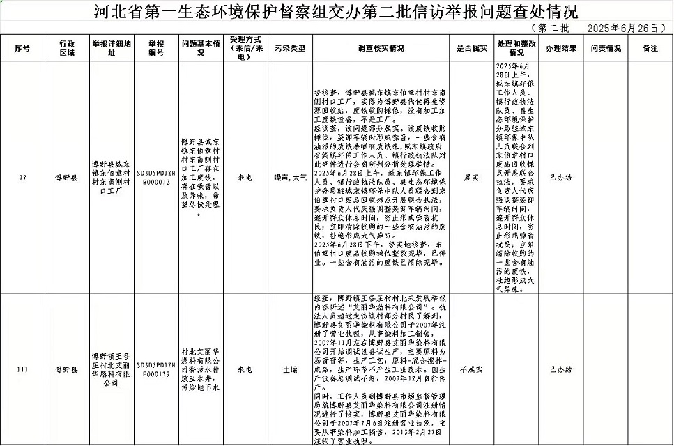 河北省第一生态环境保护督察组交办第二批信访举报问题查处情况