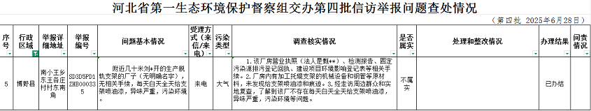 河北省第一生态环境保护督察组交办第四批信访举报问题查处情况